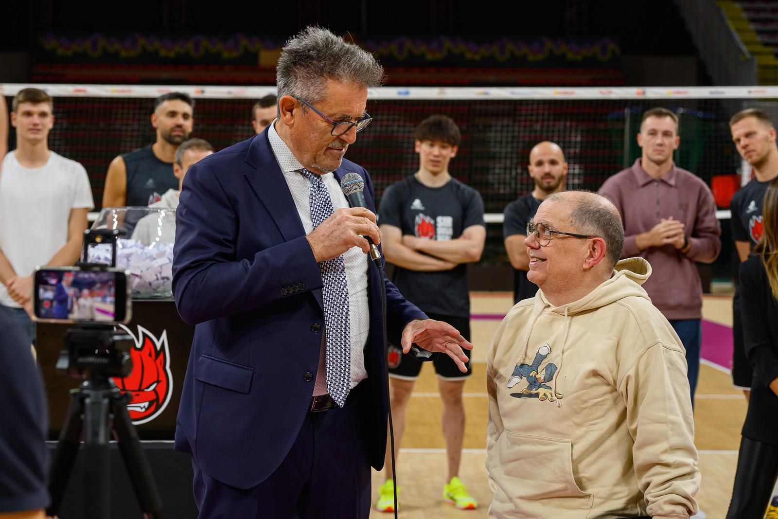 E’ stato proprio il taraflex dell’impianto perugino ad ospitare ieri, al termine della sessione pomeridiana di allenamento tecnico-tattico dei Block Devils, l’evento clou del contest “Viaggia con la squadra”, ideato dal Presidente Gino Sirci e promosso dal club bianconero, con l’obiettivo di valorizzare gli abbonati dando la possibilità a venti di loro di viaggiare al seguito del team in occasione dei due grandi eventi che si disputeranno nello scenario internazionale di questo 2025: la Supercoppa in Arabia Saudita e il Mondiale per club in Brasile!